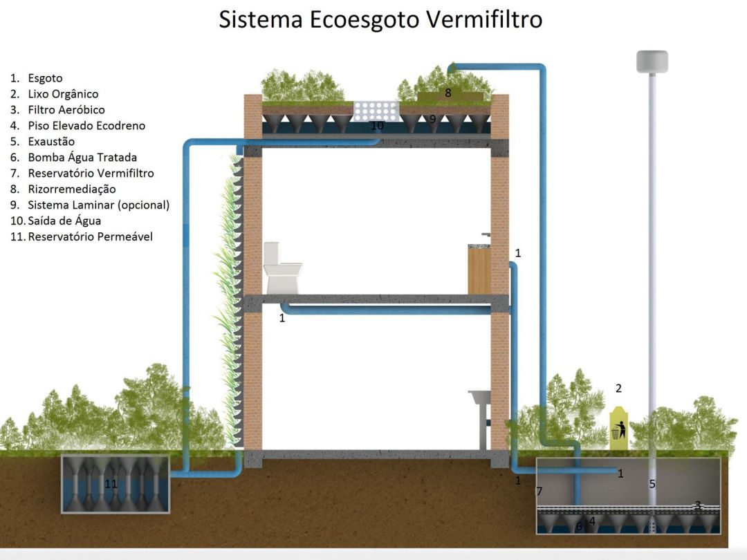 O sistema foi projetado para reservar água e repassar o excedente ao vaso