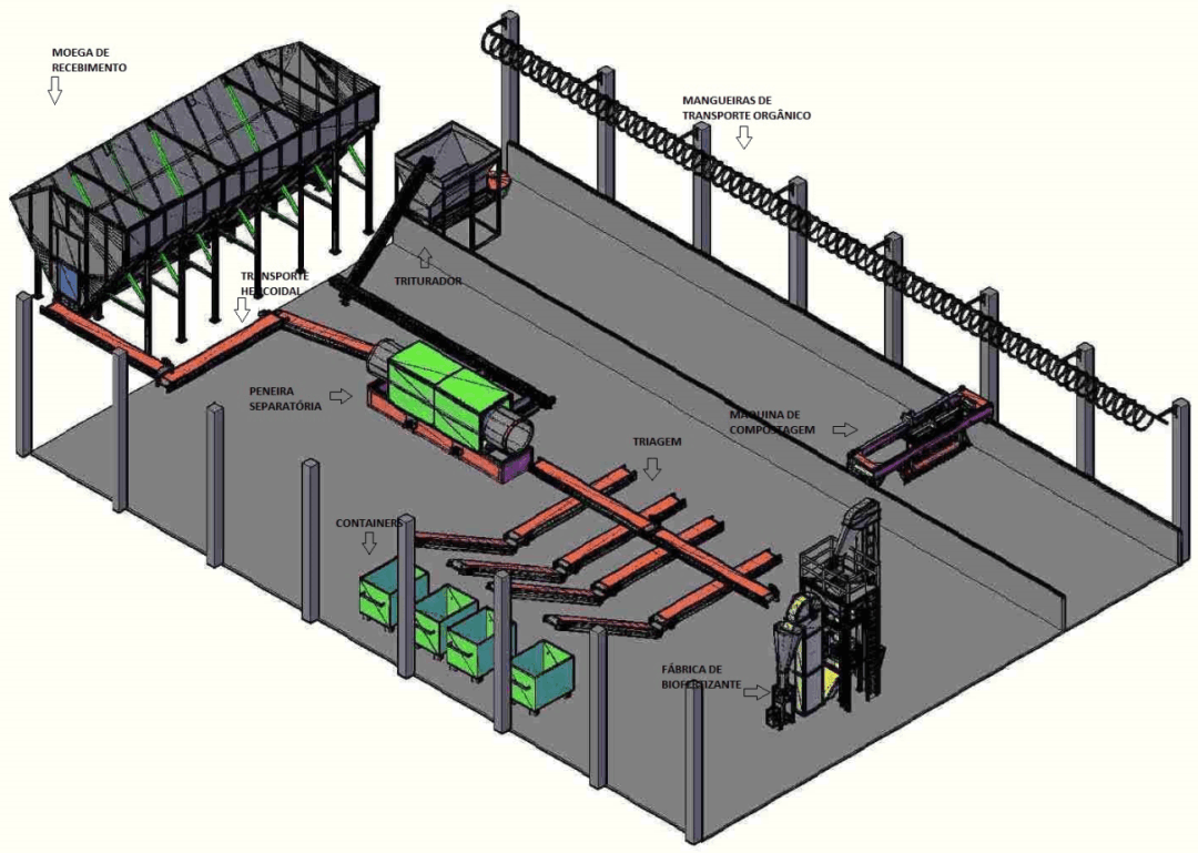 A instalação proposta da usina de triagem e compostagem representado pelos